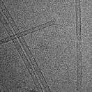 An electron micrograph of a zero-degree projection of a tilt series; the edge of the hole in QUANTIFOIL® is seen at the bottom. |